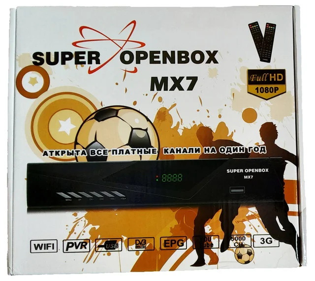 Очередной не дорогой китайский тюнер.Комплектация стандартная если не считать два пульта. Два пульта стали ложить не так давно, так как они часто ломаются а запасной тяжело найти либо их вообще нету. Данный ресивер Super OpenBox MX7 на рынок Казахстана вышел 2018 году. Тюнер поддерживает USB WIFI адаптер. Два USB гнезда. Коннектор LNB IN для подключения к спутниковой антенны.Один выход HDMI и один выход RCA для подключения к телевизору.