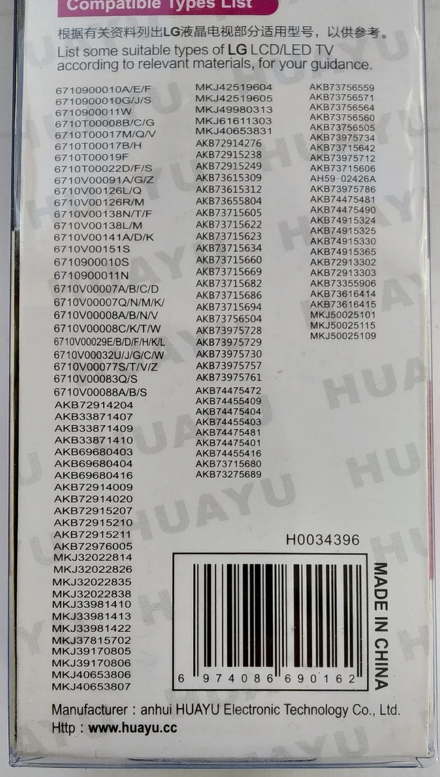 ТВ Huayu для LG RM-752CB корпус MKJ33981407 универсальный пульт